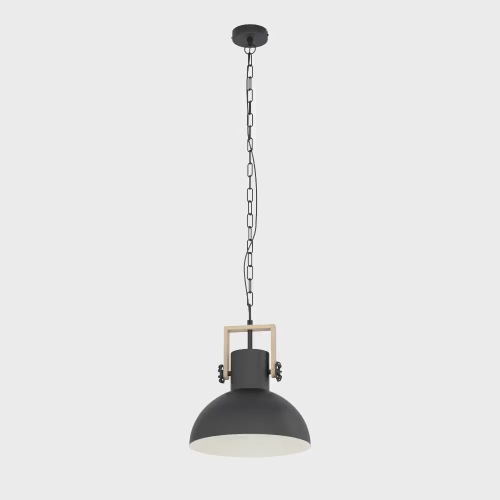 Eglo Lubenham Single Drop Pendant in Black with Wood Detailing