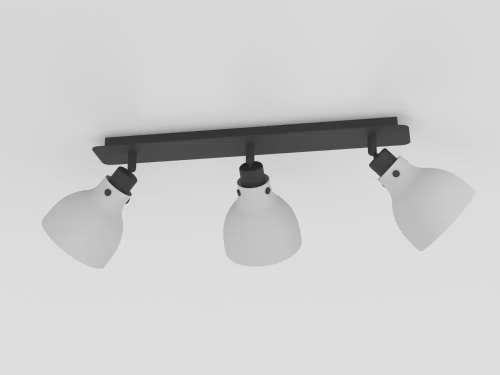 The MATLOCK ceiling light has three round metal lampshades with a pale grey finish, black industrial accents and a rectangular black metal base. The ceiling spotlight features a stylish industrial design, allowing you to adjust the light to accentuate individual areas of the room, whether in the kitchen, living room, bedroom or hallway