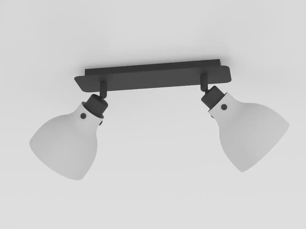 The MATLOCK ceiling light has two round metal lampshades with a pale grey finish, black industrial accents and a rectangular black metal base. The ceiling spotlight features a stylish industrial design, allowing you to adjust the light to accentuate individual areas of the room, whether in the kitchen, living room, bedroom or hallway