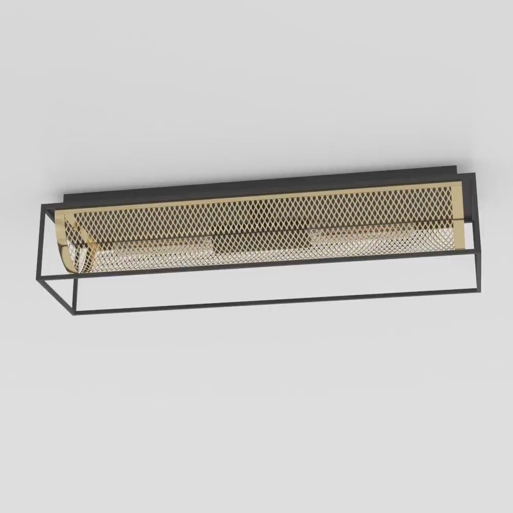 Nohales Wall Light in Black with Metal Mesh Element in Brass