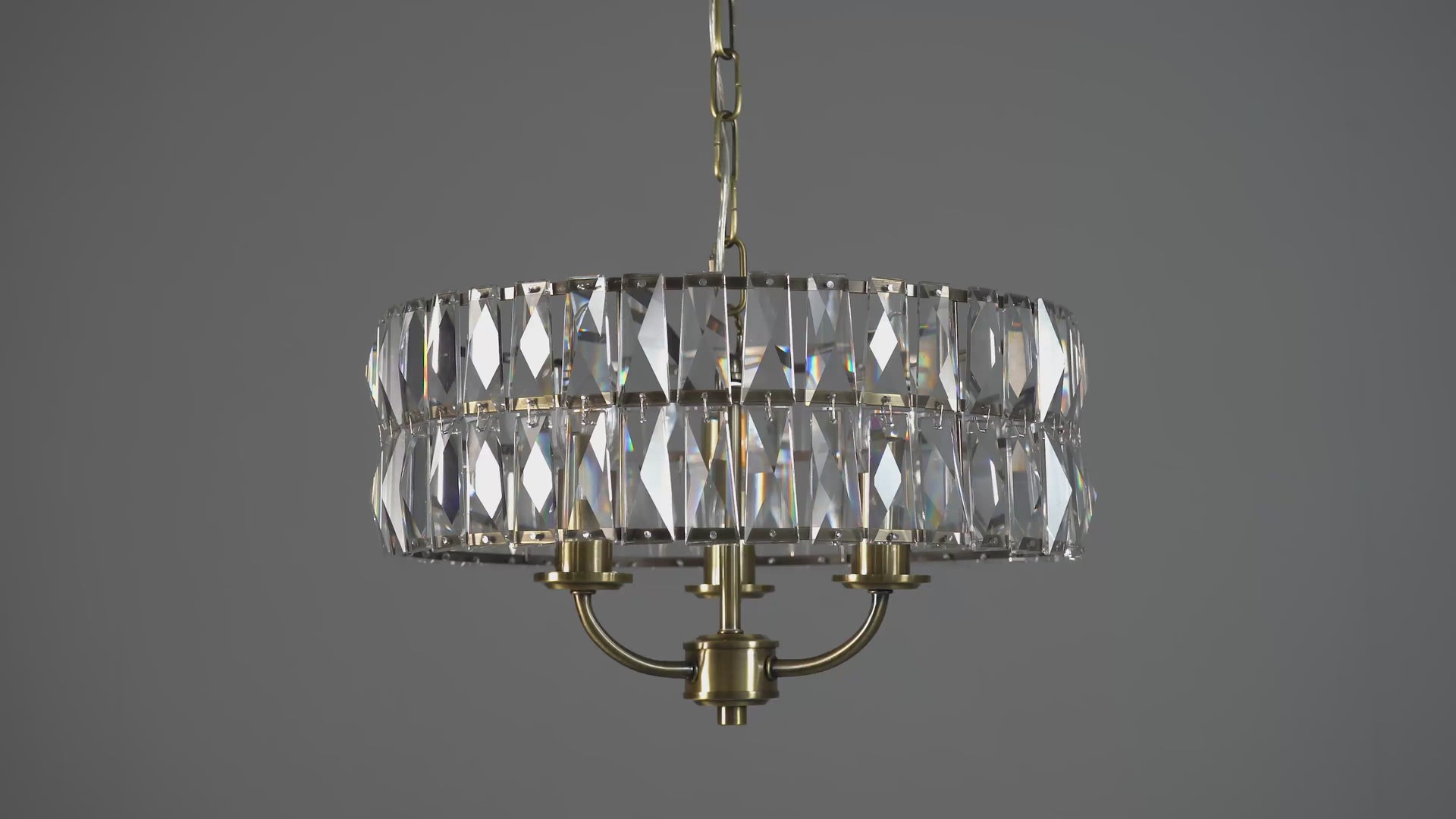 Clifton Five Light Pendant Chandelier in Antique Brass with Clear Cut Faceted Glass
