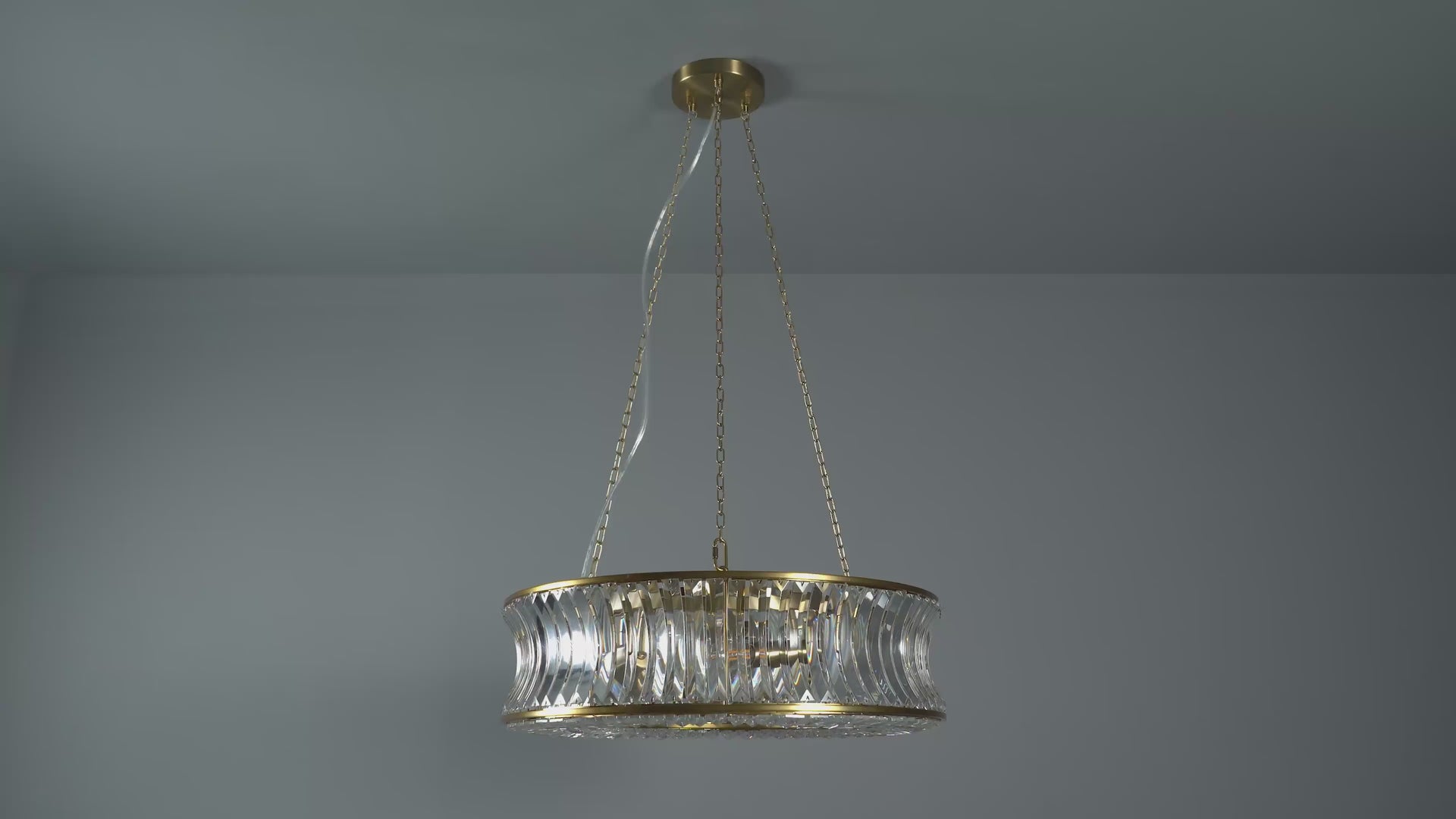 Chaldon Nine Light Pendant Chandelier in Brass with Clear Cut Faceted Crystals