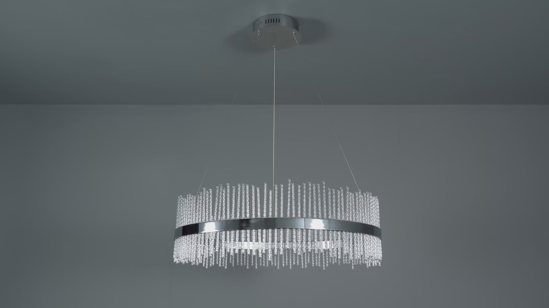 Brushed gold plated metal work with twisted clear glass rods. Height adjustable wire with 1.5 metre clear cable. 56w integrated LED - 2750 lumens 3000k warm white Dimmable when twinned with a trailing edge dimmer switch